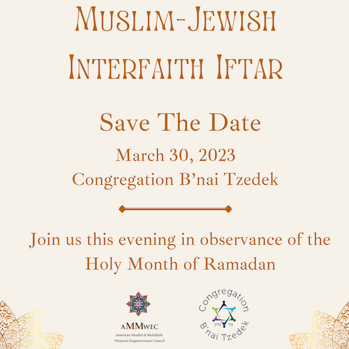 We invite you to join us on March 30th for a Muslim-Jewish Iftar to break bread and build bridges with diverse faith communities. Iftar is the traditional evening meal where Muslims end their daily fast during the holy month of Ramadan. This important event is an excellent opportunity to come together with people of different faiths and backgrounds to celebrate in the spirit of peace and unity.